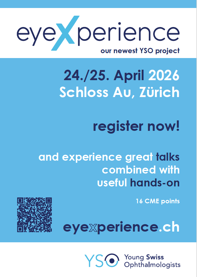 eyeXperience est une formation organisée par YSO (Young Swiss Ophthalmologists). Celle-ci n'est toutefois pas réservée aux jeunes, mais s'adresse également aux médecins spécialistes et aux ophtalmologues en cabinet privé.